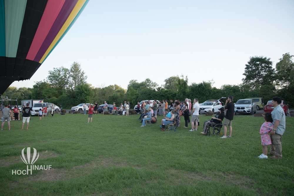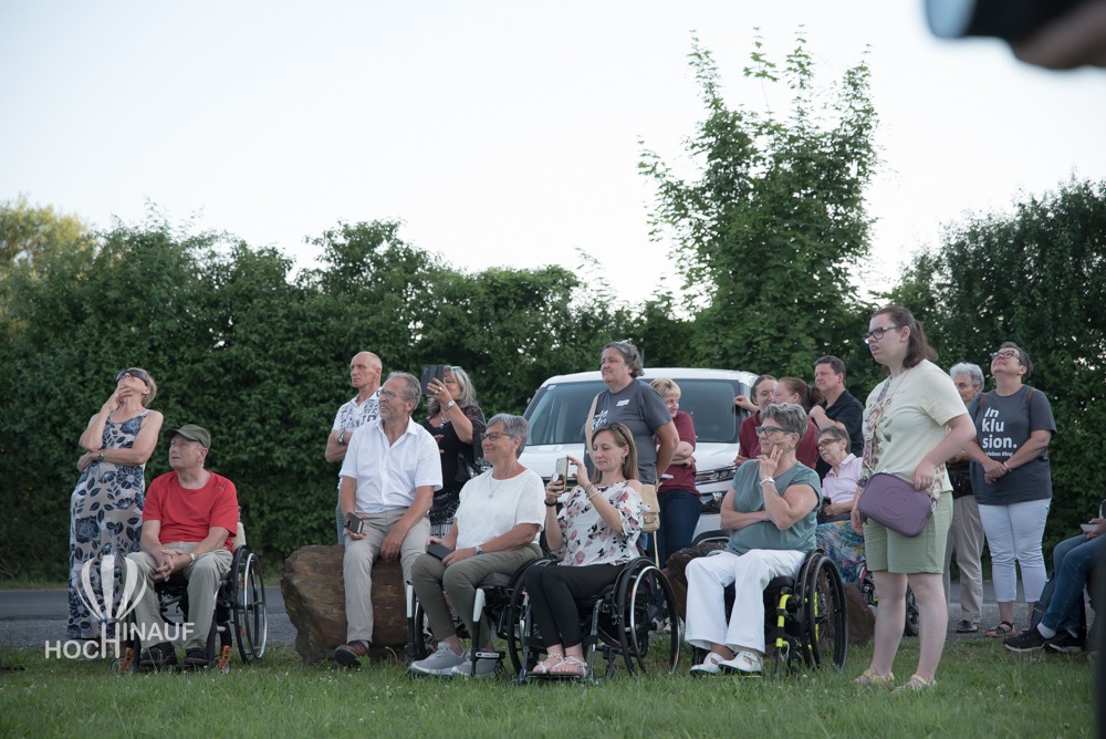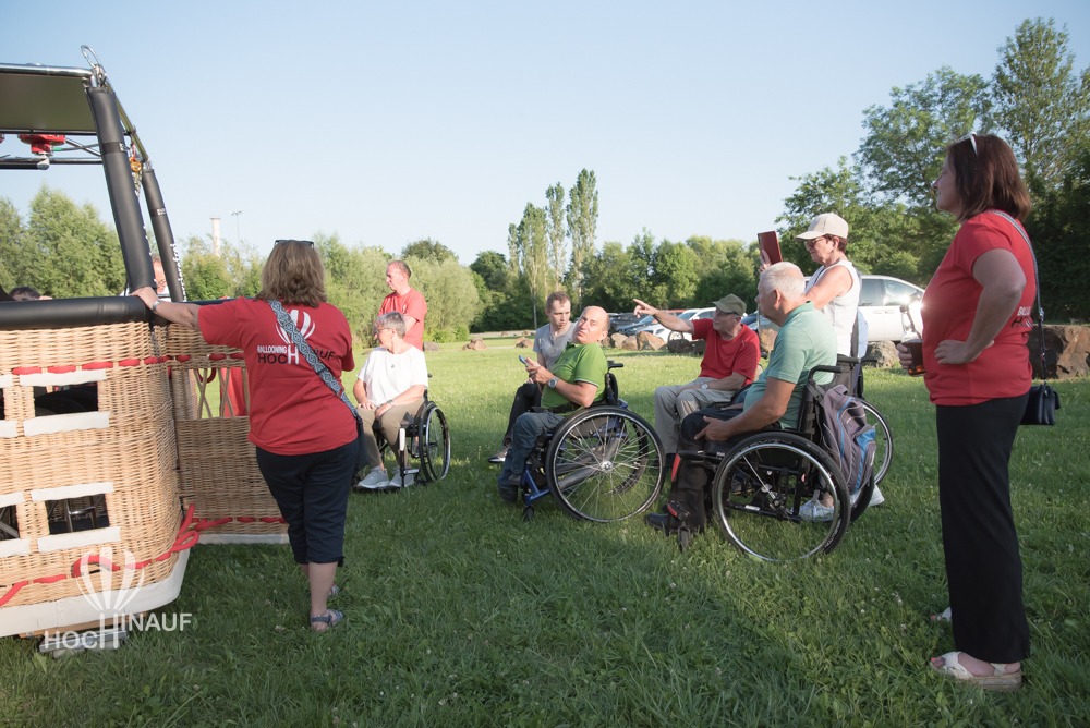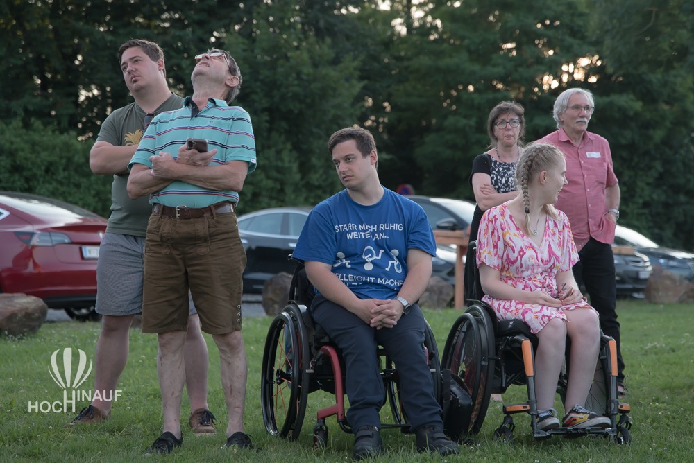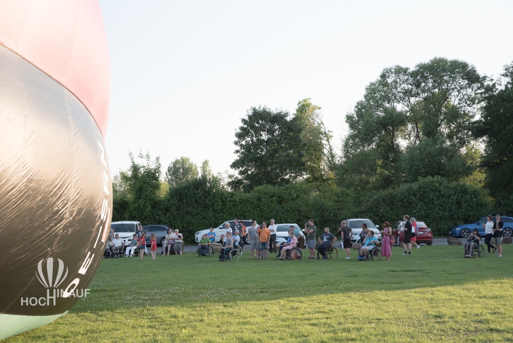 Unser Ballonteam holte den barrierefreien Korb aus dem Anhänger und stellten ihn auf der Wiese auf. So konnten alle Interessierten einen Blick auf die behindertengerechten Sitze und den Korb werfen – und sich selbst ein Bild davon machen, wie barrierefreies Ballonfahren möglich ist. Viele Besucherinnen und Besucher nutzten die Gelegenheit, ihn aus der Nähe zu besichtigen oder gar Probe zu sitzen – voller Interesse, Begeisterung über das, was möglich geworden ist. Barrierefreies Ballonfahren.