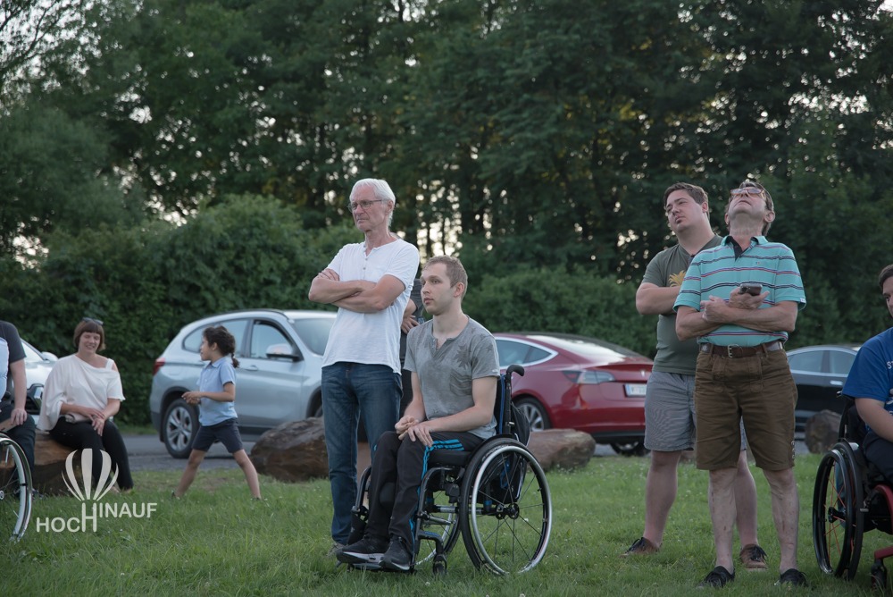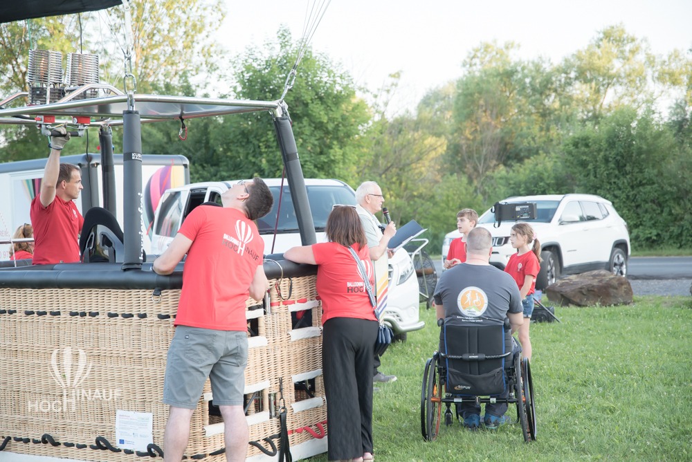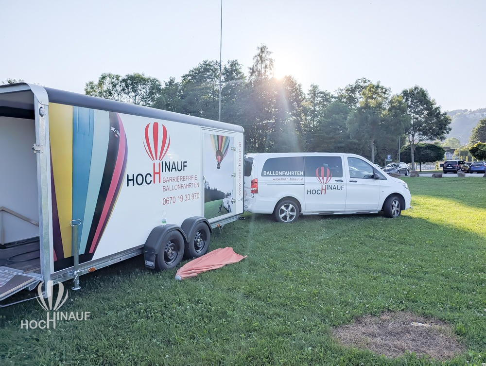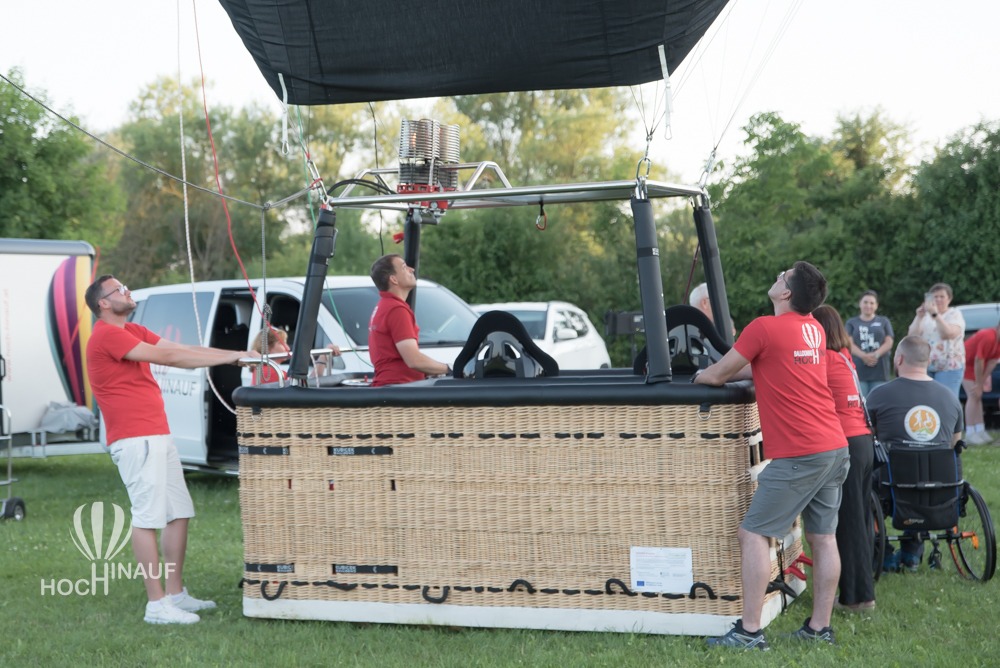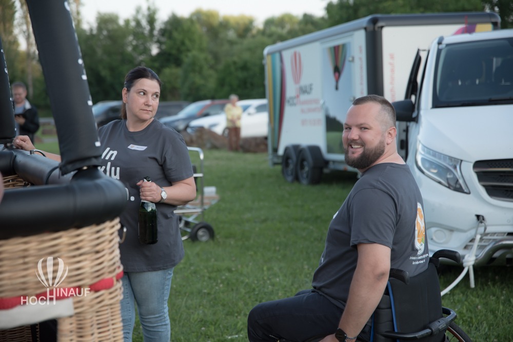 Unser Ballonteam holte den barrierefreien Korb aus dem Anhänger und stellten ihn auf der Wiese auf. So konnten alle Interessierten einen Blick auf die behindertengerechten Sitze und den Korb werfen – und sich selbst ein Bild davon machen, wie barrierefreies Ballonfahren möglich ist. Viele Besucherinnen und Besucher nutzten die Gelegenheit, ihn aus der Nähe zu besichtigen oder gar Probe zu sitzen – voller Interesse, Begeisterung über das, was möglich geworden ist. Barrierefreies Ballonfahren.