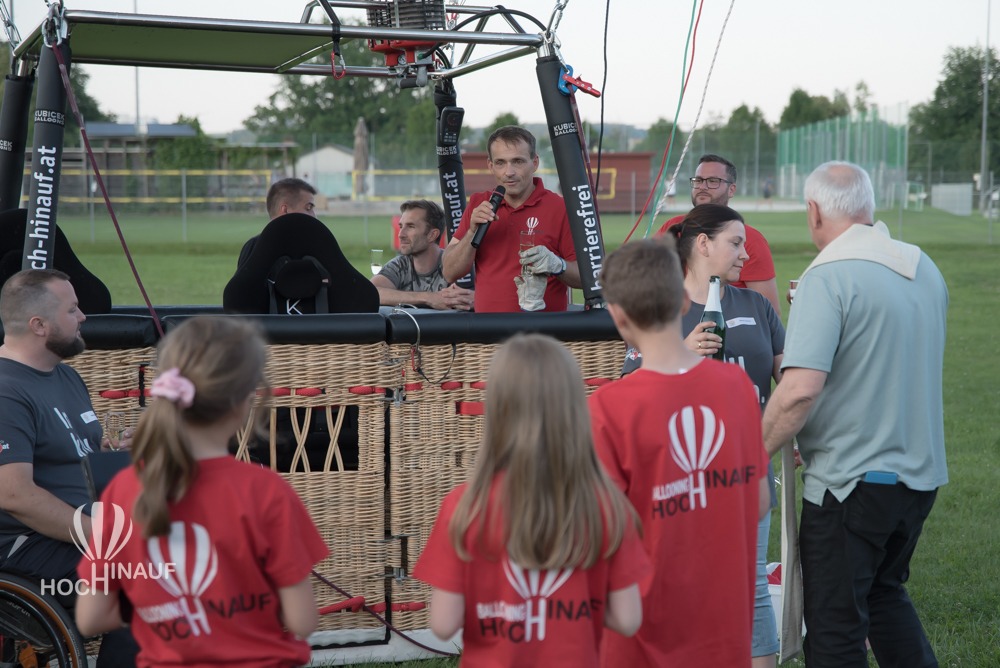 Simone Kager und Obmann Stefan Pflanzl erzählten auf der Bühne von ihrer ersten barrierefreien Ballonfahrt – nicht als technische Errungenschaft, sondern als echtes Erlebnis, das verbindet. Schwerelos durch die Lüfte zu schweben, wie Menschen ohne Behinderung auch. Nicht draußen stehen, sondern mittendrin sein.